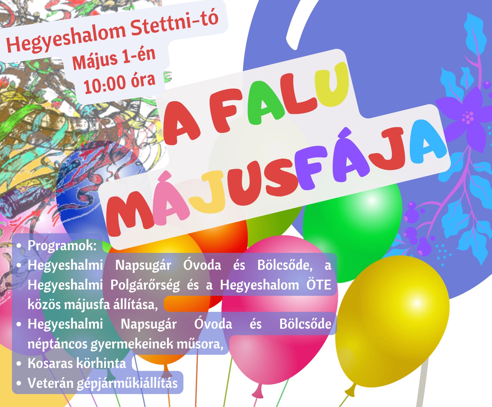 | Kedves Hegyeshalmiak, Tisztelt érdeklődők! Május elsején számos programokkal várunk benneteket a Stettni-tó partjánál! 10 órától az Egyesületek és a Hegyeshalmi Napsugár Óvoda és Bölcsőde ovisainak közös májusfa díszítése és felállítása, majd táncos bemutató az ovisok előadásában. Táncházzal és kosaras körhintával, kirakodóvásárral várjuk az érdeklődőket! Bővebben, klikk a képre! |