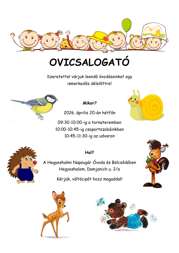 Kedves Családok! Kedves Fiatalok! 2025.11.01-től a hegyeshalmi házi gyermekorvosi szolgálatot az önkormányzat működteti. A rendeléseket egyelőre rövidített rendelési időkkel Dr. Smodics Katalin és Dr. Bartalos Gábor látja el.... Bővebben, klikk a képre! |